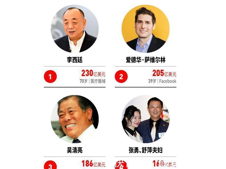 94岁的吴清亮排在新加坡富豪榜第3,身价到达186亿美元,祖籍广东潮州。他被誉为新加坡“油漆大王”,青年时期吴清亮便跻身工商界,与人合营油漆业。由于经营有方,生意日益兴隆。手上的立邦漆产量及销售额在亚太地区稳居首位,在全球名列前茅;新加坡富豪榜排在第2的是爱德华·萨维尔林(EduardoSaverin),身价约205亿美元,出生于巴西圣保罗,毕业于美国哈佛大学,是全球知名社交平台脸书的联合创始人之一。