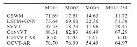 从下表可以看到OCVT在所有四个数据集上都达到了最高的精度。ConvVT在Mod1数据集上也有很好的表现,但是在其他需要长期依赖关系的数据集上,精确度会下降。这表明了在对象级时空交互建模中使用以对象为中心的表示的有效性。